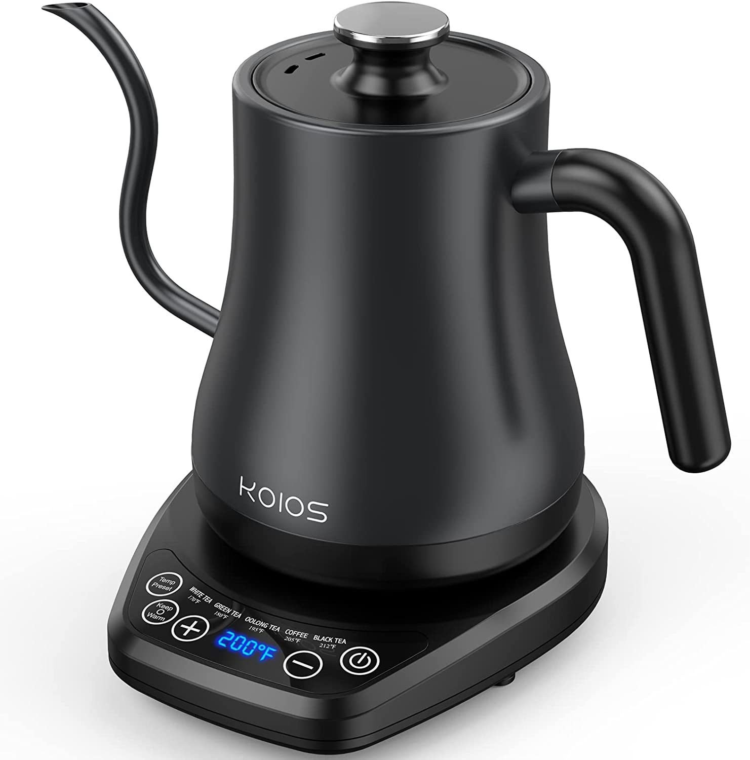 1.±1°F Temp Control:KOIOS variable temperature gooseneck kettle allows 1°F temp adjustment from wide range between 104 to 212°F. Built-in LCD panel indicates target temp & realtime water temp. 5 Temp Presets meet needs of different drink, such as Black tea, Coffee, Oolong, Green tea, White tea