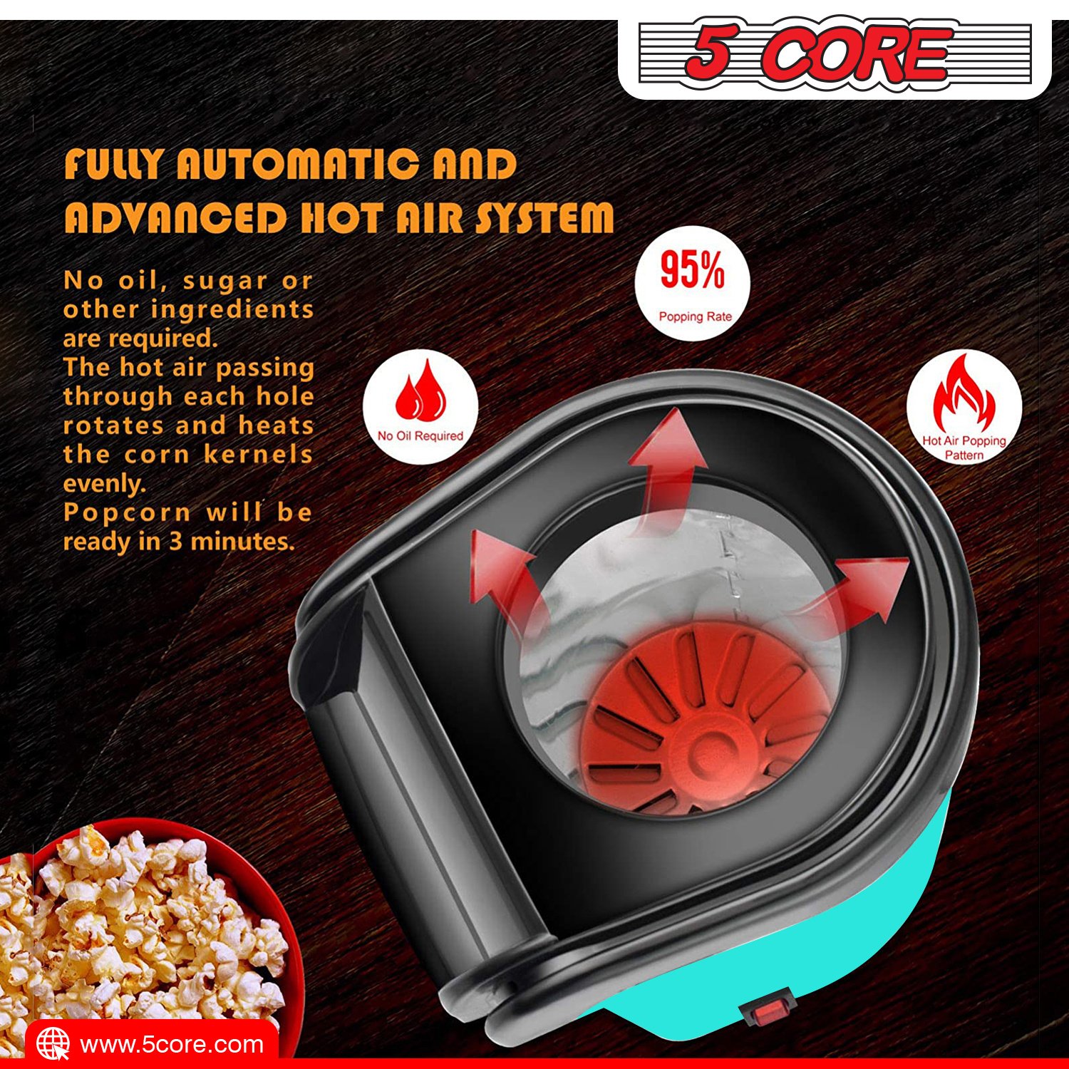 Home > 5 Core Hot Air Popcorn Popper Machine 1200W Electric Popcorn Kernel Corn Maker Bpa Free, 95% Popping Rate, 2 Minutes Fast, No Oil-Healthy Snack for Ki