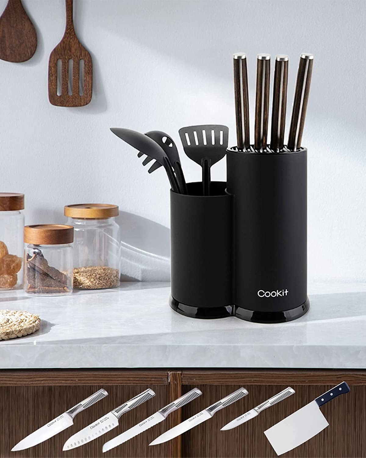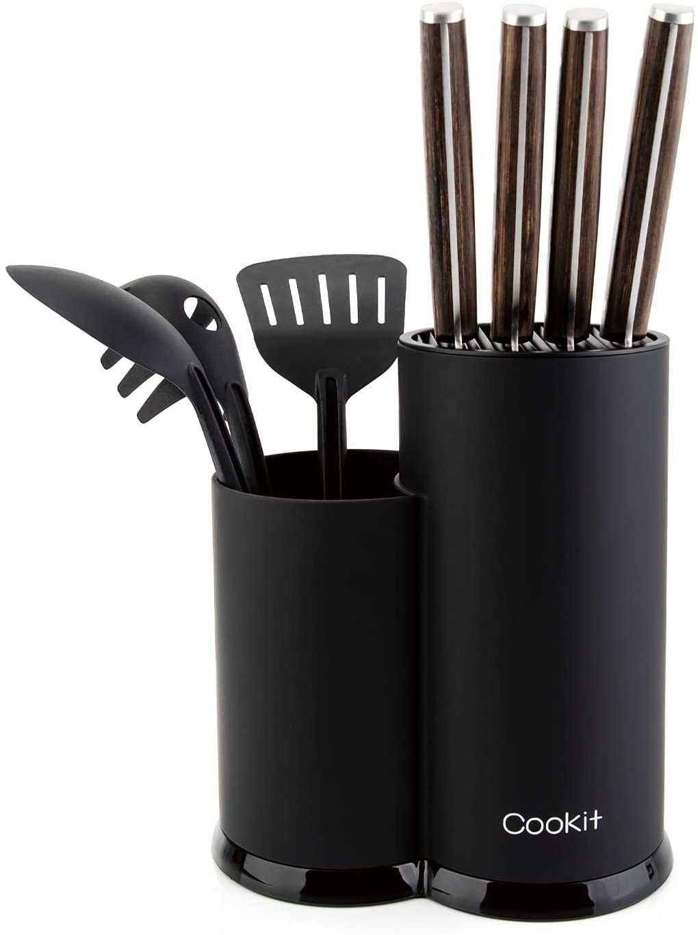 Home > Knife Block Holder, Cookit Universal Knife Block without Knives, Unique Double-Layer Wavy Design, Round Black Knife Holder for Kitchen, Space Saver Kn