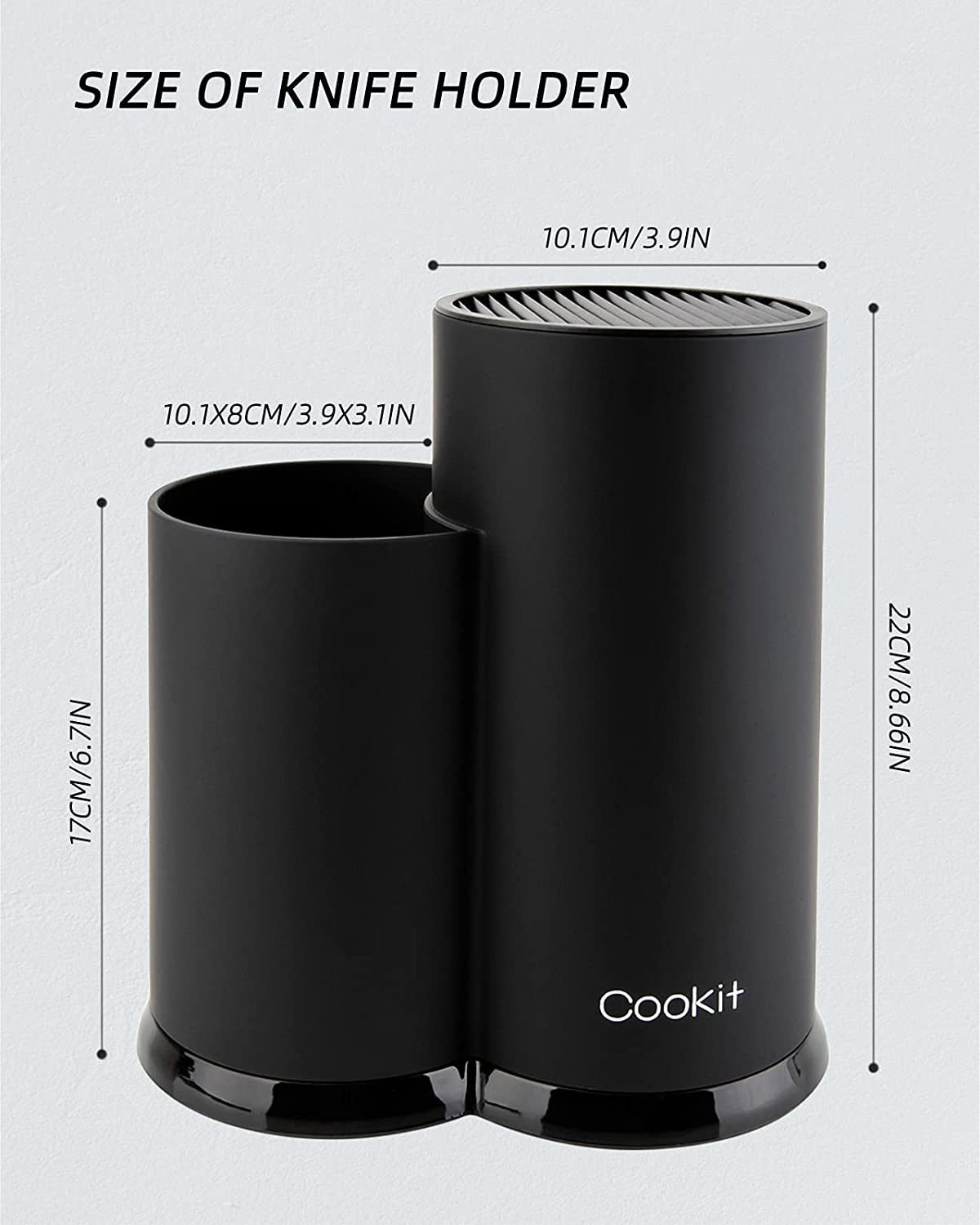 1.Cookit knife block made of premium PP material, it can holds all up to 14 knives with 8” blades plus a pair of kitchen scissors or sharpener, save space and enjoy a huge amount of capacity in small kitchen. perfect gifts for Birthday Father's Day, Mother's Day, Christmas, Anniversary, and Wedding, T