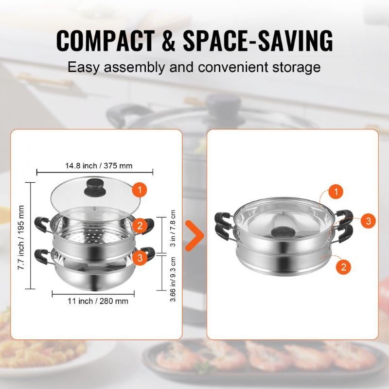 With its triple-layered bottom, the steam pot ensures rapid and even heat distribution, enabling faster and more convenient steaming, all while retaining the nutritional goodness and flavors of your dishes.