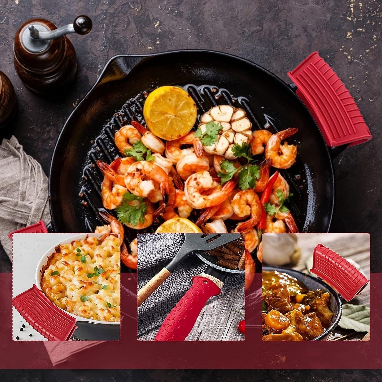 6 Pieces Of Red Silicone Pot Handle; Silicone Thermal Handle Holder; Auxiliary Pot Handle Sleeve; Suitable For Frying Cast Iron Frying Pan; Metal Pot